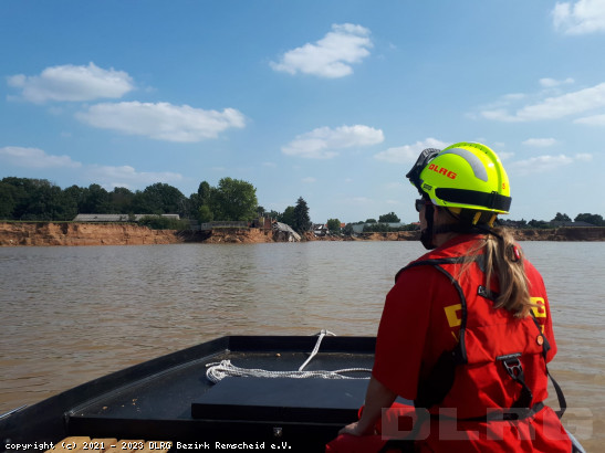 Nach unserem ersten Einsatz am letzten Freitag (16.07.2021) waren unsere Kamerad*innen am heutigen Mittwoch (21.07.2021) erneut im Einsatz. Die Allamierung ging am Dienstag ein. Gemeinsam mit den Kamerad*innen aus Wuppertal ging es um 06:00 Uhr los in Richtung Bliesheim und um Viertel vor acht konnten unsere Einheiten dort Einsatzbereitschaft melden. Ab halb drei wurden dann im Kieswerk in Bliesheim drei Boote eingesetzt. Während ein Boot das überschwemmte Kieswerk nach Vermissten absuchte, hat das zweite Boot eine Fotographen der Bundeswehr aufgenommen. Dieser konnte so Fotos von der Wasserseite der Abbruchkante im Kieswerk machen. Das dritte Boot wurde zur Abischerung unserer Kamerad*innen eingesetzt und hat so sichergestellt, dass alle unsere Kamerad*innen gesung wieder nach Hause ko ... Mehr erfahren