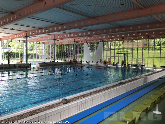 Vom 04.10.2022 bis 14.10.2022 wird durch Bezirk DLRG Bezirk Remscheid e.V. im Sportbad (42853 Remscheid, Schützenplatz 3) ein Anfängerschwimmkurs für Kinder ab 5 Jahre angeboten. Die Kinder werden zunächst spielerisch mit dem Element Wasser vertraut gemacht und Ängste werden abgebaut. Danach werden die Grundfertigkeiten wie Springen, Tauchen, Schweben, Auftreiben Atmen, Gleiten und Fortbewegen geschult. Je nachdem wie schnell die Kinder lernen, so ist am Ende des Kurses ggf. die Abnahme des Seepferdchens möglich. Der Kurs kostet 99€. Haben wir dein Interesse geweckt? Melde dich hier an. Die Anmeldung ist bis zum 27.09.2022 um 18 Uhr möglich. Wir freuen uns auf deine Anmeldung. ... Mehr erfahren