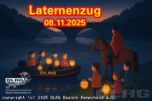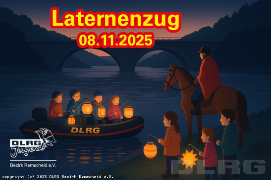 Am 08.11.2025 findet unser traditioneller Laternenumzug an der Wuppertalsperre statt. Gemeinsam mit St. Martin werden wir zusammen singend am Ufer entlang gehen und unsere Laternen zum Leuchten bringen. Einen Teil des Rückweges können die Kinder (inkl. einer Begleitperson) dann in einem unserer Boote auf dem Wasser zurücklegen. Im Anschluss gibt es Weckmänner, Grillwürstchen und Getränke zur Stärkung, an unserer Rettungsstation. Meldet euch hier an und seid dabei. Wir freuen uns auf euch! ... Mehr erfahren